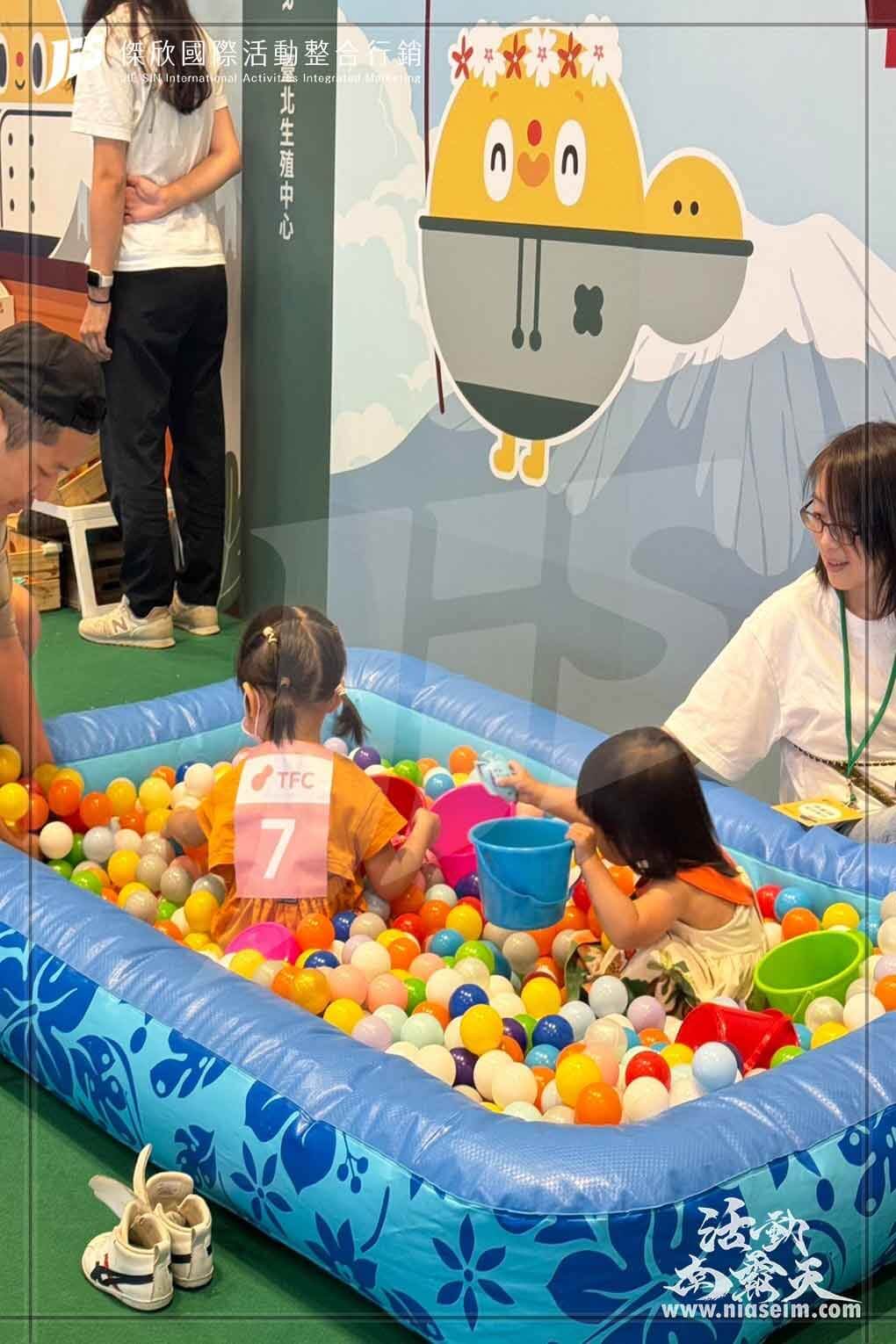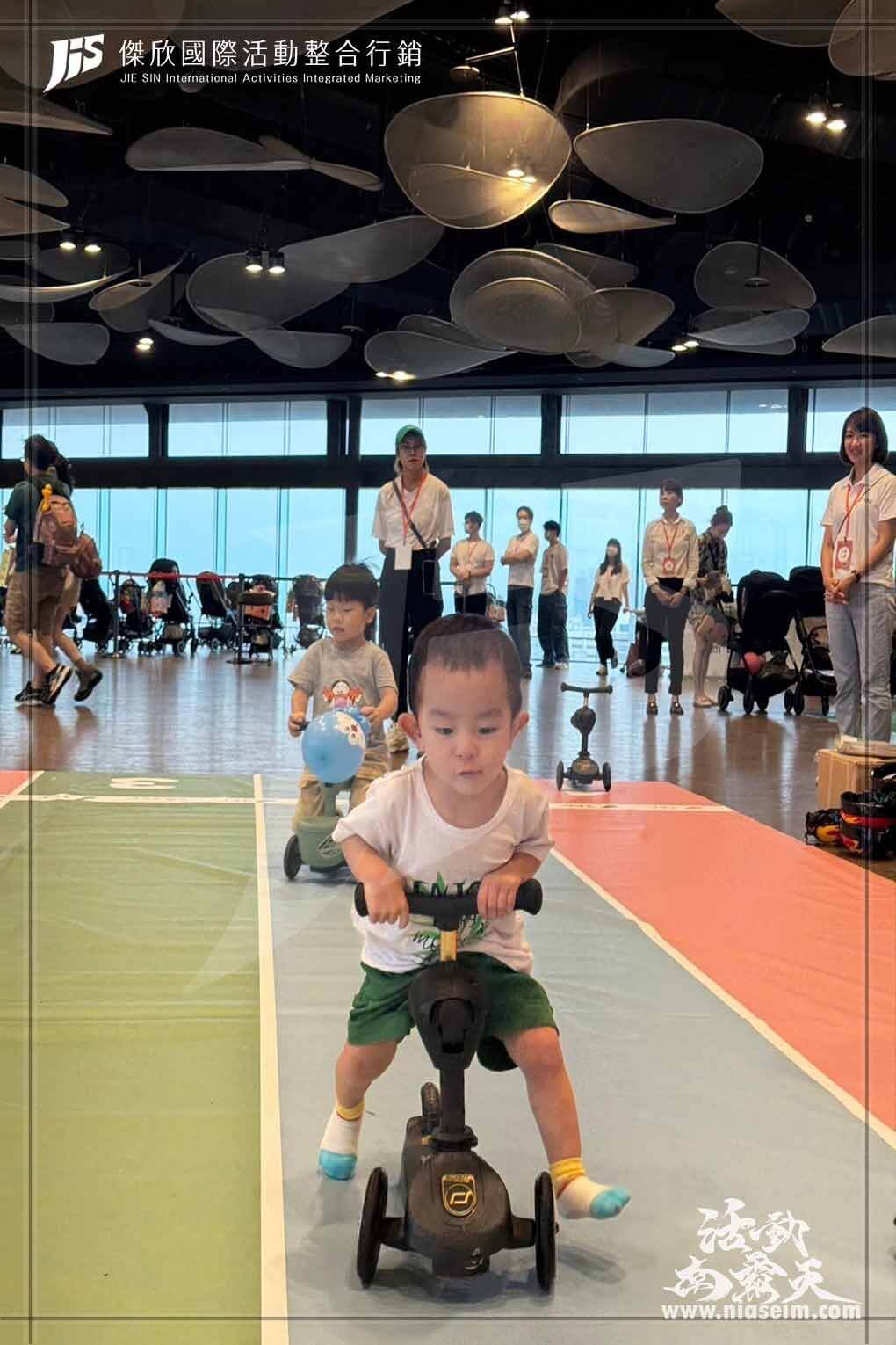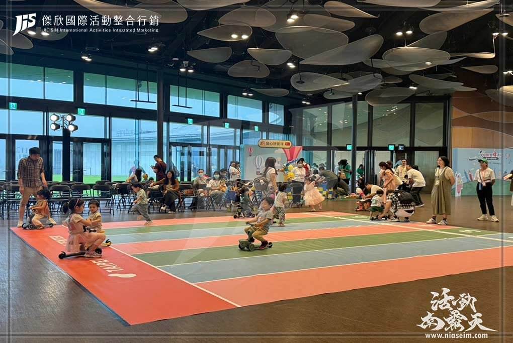 今年一樣由我們佈置活動會場以及一系列的親子遊戲區,搭配每個關卡特地準備了兒童桌椅、寶寶購物車、兒童釣魚球池等遊戲道具,還有專屬寶寶的超大型跑道設計,讓寶寶們能在競賽遊戲過程中同時也能激發潛力。