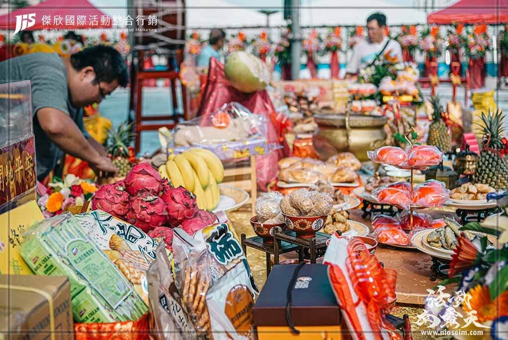 端莊體面的迎賓接待禮賓、豐盛美味的中西式自助吧餐點、客製化的LOGO剪彩帶、熱鬧有氣氛的節目與祥獅獻瑞、莊嚴的祭祀擺宴,